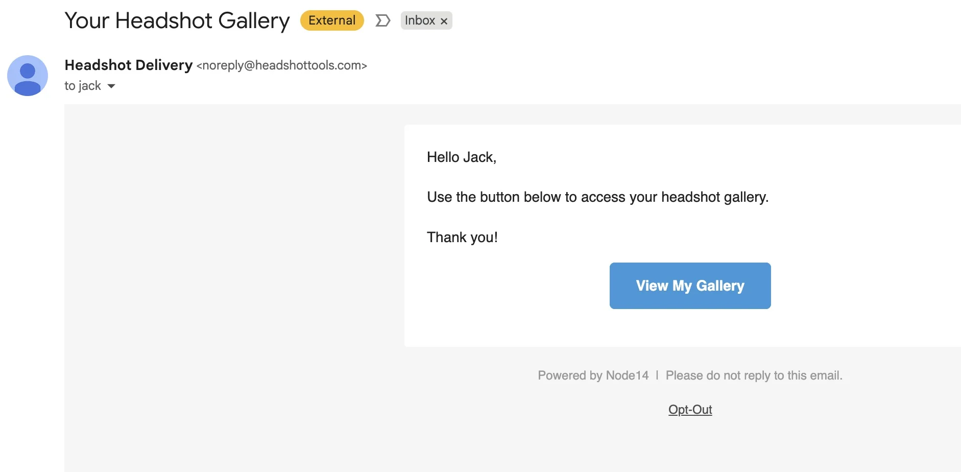 Client branding is placed on a mobile friendly url that guests scan to sign up to have their headshot taken. Additional branding/messaging can also be customized on the gallery that has the individual headshots of each subject.  Unfortunately, the isn’t any email branding possible, see what the email looks like.   Graphic spec is 600×150 pixels as a JPG or transparent PNG file.