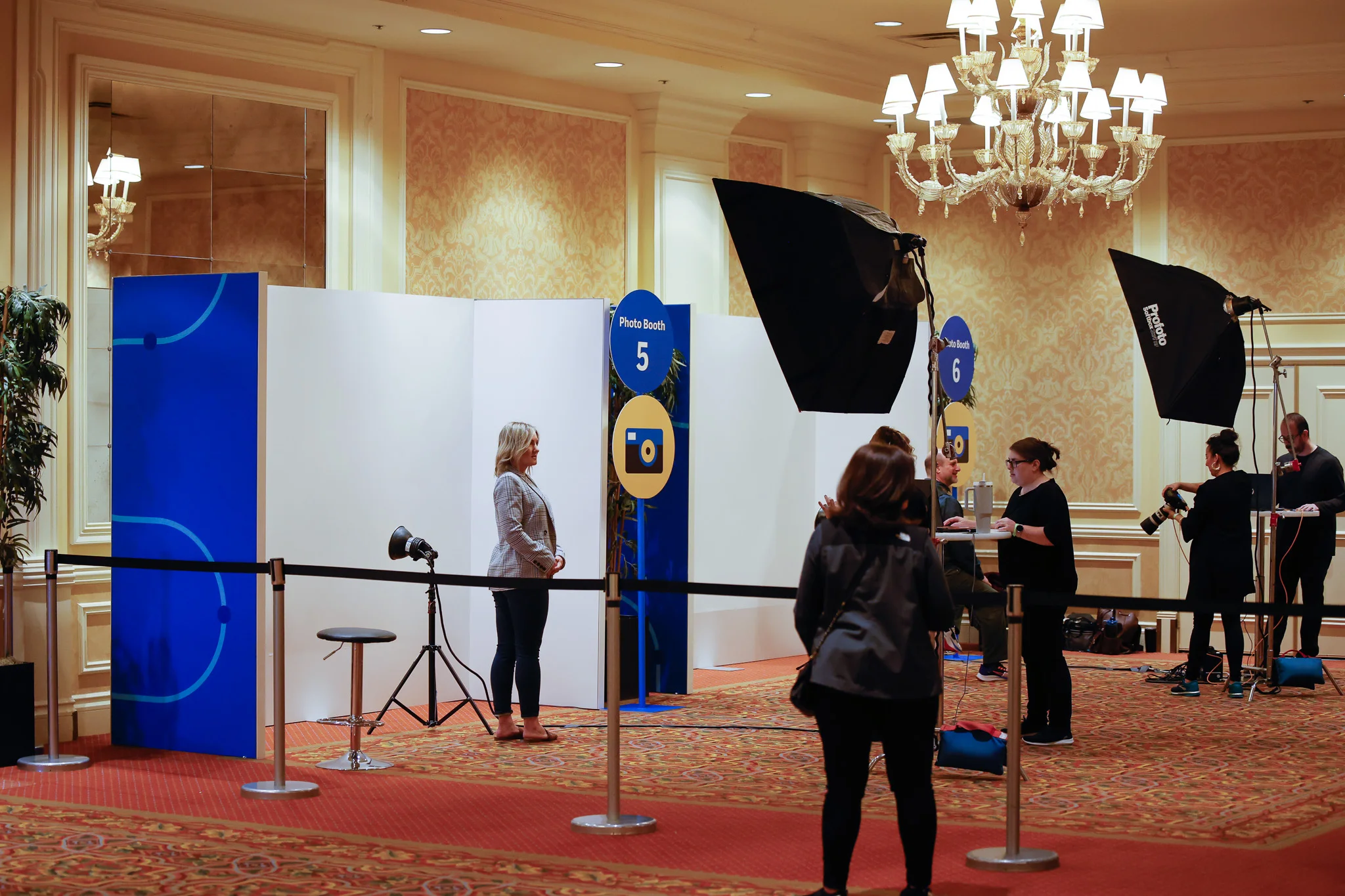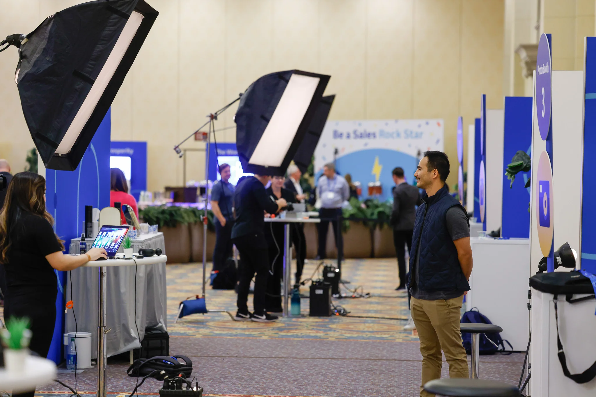 Capturing professional headshots during a tradeshow or user conference presents an exhilarating opportunity to foster leads and elevate brand visibility. Drawing upon our extensive experience, we’ve traversed the spectrum of such events, refining our process to ensure a seamless journey for both clients and end-users alike. Our array of options empowers clients to tailor the experience precisely to their requirements, thus maximizing its impact.